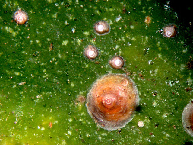 | 配套誘捕器 | 三角形誘捕器 誘蟲板 | 昆蟲信息 | 紅圓蚧(Aonidiella aurantii Maskell) 別名:腎圓盾蚧,紅圓蹄盾蚧。 雌介殼圓形,直徑1.8-2mm,淡黃色可透見蟲體,故呈橙紅至紅褐色,邊緣淡黃色,中央稍隆起,殼點黃褐至黑褐色位于中央。雄介殼長橢圓形,長1mm,淡灰黃色,邊緣色淡,殼點偏于一端。成蟲雌成蟲略呈腎形或馬蹄形,長lmm,寬1.1mm,橙黃至紅色。背面、腹面硬化。臀板淺褐色,臀葉3對。雄成蟲體長1mm左右,橙黃色,眼紫色。 年生2-4代,浙江2代,南昌3代,華南4代,以二齡幼蟲或受精雌蟲在枝葉上越冬。翌春繼續(xù)為害,生殖方式為卵胎生。浙江6月上中旬開始產(chǎn)仔,8月間發(fā)生第1代成蟲,10月中旬發(fā)生第2代成蟲,交配后雄死亡,雌成蟲越冬。江西南昌3代區(qū),雄成蟲羽化期分別在4月中下旬、7月、8月中旬至10月上旬,羽化盛期在4月中旬、7月中旬及9月上中旬。 |